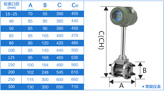儀表通徑為DN50,英文顯示, 4~20mA電流信號(hào)輸出,溫壓補(bǔ)償型