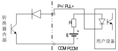 PUL+/ P+、ALM+(AH)、ALM-(AL)和 PDIR(FDIR)均為集電*開路(OC 門)輸出(參閱圖 3.6b、3.6d,用戶接線時必須參照如下電路外接電源和負載:
